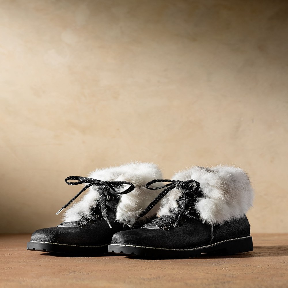 Crafted from premium hair-on calfskin and adorned with plush rabbit fur, these boots offer a visually stunning texture that instantly elevates your winter wardrobe. Each pair is lined with 100% virgin Italian wool—a natural fiber prized for its incredible insulation, breathability, and moisture-wicking performance. This ensures lasting comfort, whether you’re outdoors in freezing weather or transitioning between indoor and outdoor environments. The water-repellent nature of the materials offers dependable protection against snow and slush, allowing you to enjoy winter activities without worry.